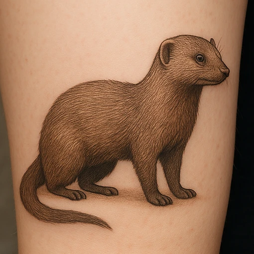 Mongoose tattoos symbolize resourcefulness, agility, and alertness. They represent intelligence, courage, and adaptability. The mongoose embodies keen observation, independence, and resilience. A mongoose tattoo highlights the wearer’s quick thinking, problem-solving ability, and readiness to face challenges while maintaining self-reliance and strategic awareness.