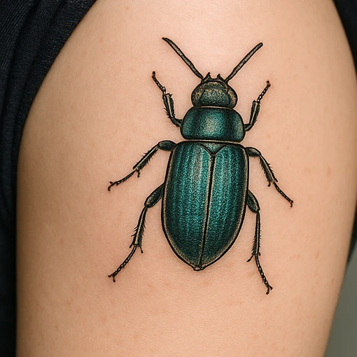 Beetle tattoos symbolize protection, transformation, and resilience. They represent patience, persistence, and harmony with nature. The beetle embodies adaptability and strength. A beetle tattoo highlights the wearer’s resourcefulness, patience in achieving goals, and connection to the natural world.