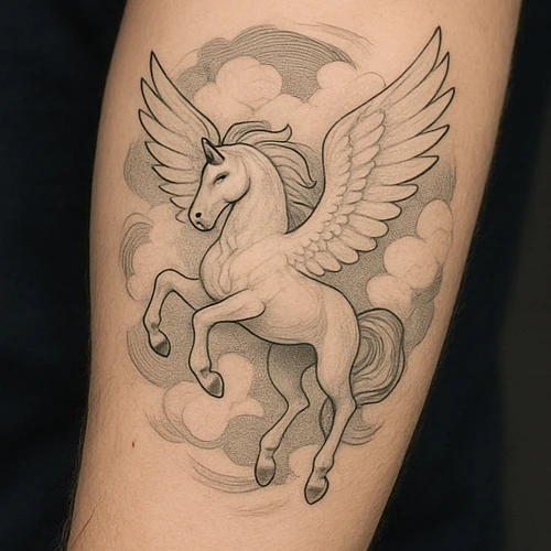 Pegasus tattoos symbolize freedom, flight, and majesty. They represent strength, courage, and mythic wonder. The tattoo highlights inspiration, heroism, and awe-inspiring qualities. A Pegasus tattoo conveys fascination with mythology, imagination, and soaring ambition.