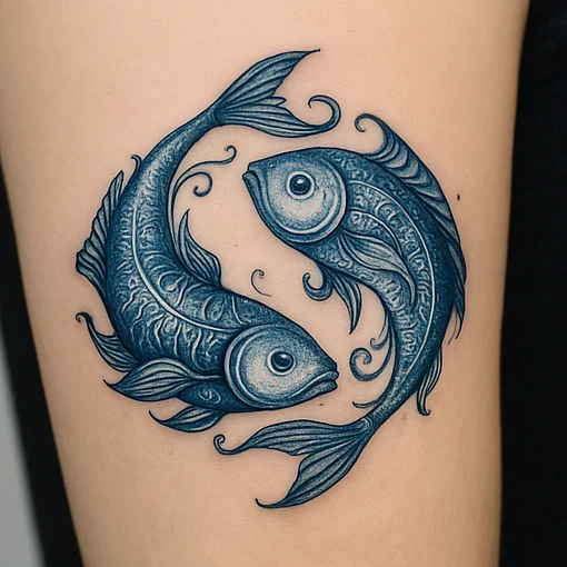 Pisces tattoos symbolize intuition, compassion, and sensitivity. They represent adaptability, flow, and creative imagination. The tattoo highlights spiritual awareness, emotional depth, and connection with the subconscious. A Pisces tattoo conveys empathy, dreamlike insight, and personal transformation.