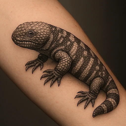 The gila monster tattoo embodies endurance, survival, and strength. Known as a rare but resilient creature, it symbolizes hidden energy and protection. This tattoo reflects tenacity, patience, and mysterious power, chosen by those who admire toughness beneath calmness. It represents both caution and respect for life’s challenges, reminding the wearer of inner strength.