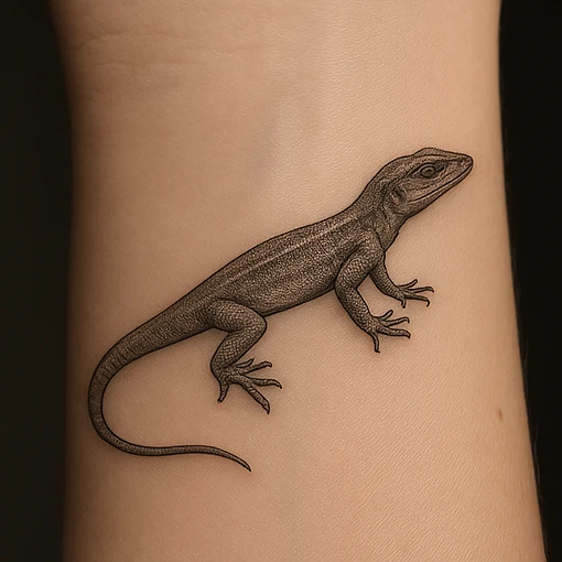 The lizard tattoo symbolizes adaptability, renewal, and spiritual transformation. Known for its ability to regenerate, it represents survival and resilience. The design reflects curiosity, agility, and playfulness, reminding the wearer of growth through change. Often chosen for its mystical associations, it embodies balance, strength, and resourceful adaptation to life’s challenges.