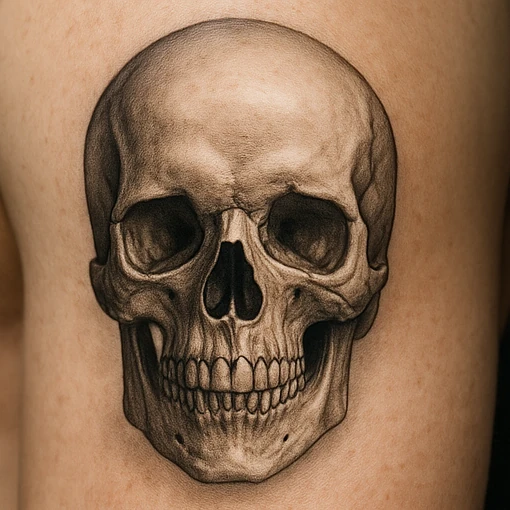 A skull tattoo symbolizes mortality, resilience, and transformation. It reflects awareness of life’s fragility and the courage to confront it. This design often carries mystery, representing both fear and power. Chosen in many styles, from minimalistic to realistic, it embodies timeless symbolism of life, death, and strength.