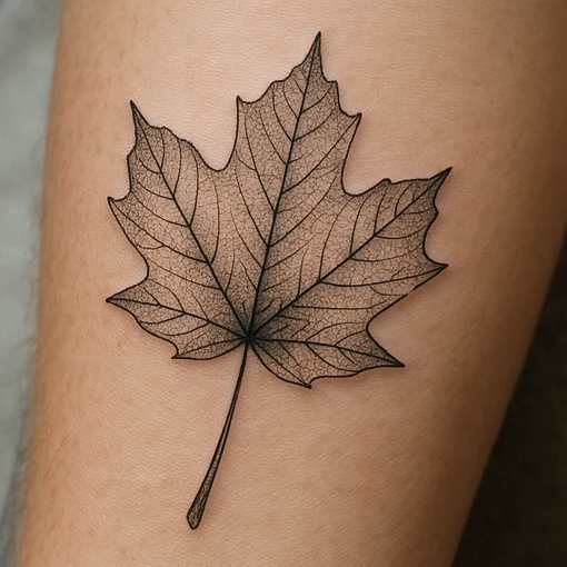 A maple leaf tattoo signifies transformation, balance, and adaptability. It reflects life’s cycles, reminding the wearer of change and growth. The maple’s vibrant seasonal shifts highlight beauty in impermanence and resilience. This tattoo is a powerful emblem for embracing change while staying true to inner balance.