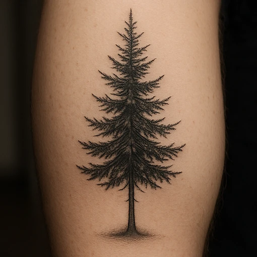 A spruce tree tattoo conveys renewal, steadfastness, and peace. Its evergreen nature reflects endurance and the cycle of life. The spruce embodies quiet resilience and harmony with the natural world, making it meaningful for those who value stability, spiritual balance, and connection with the earth.